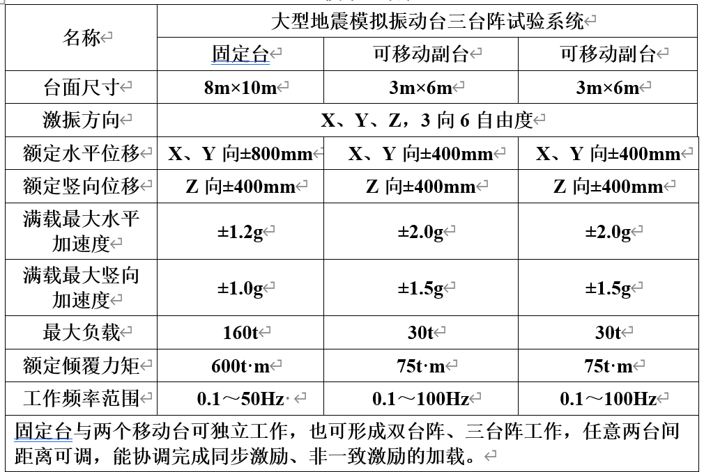 仪器名称:三向六自由度大型地震模拟振动台三台阵试验系统